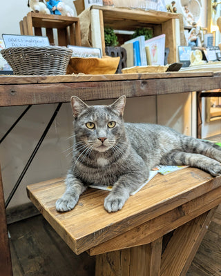 You might spot an adorable grey cat wandering around the farm — that’s Smokey the Cat, a beloved resident of Bates! With quite the fan club, he can often be found resting inside Farmer's Daughter Boutique or dashing through the grassy fields. Smokey is a friendly kitty, so feel free to stop and say hello if you see him!