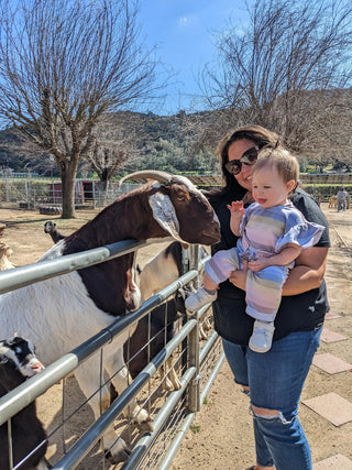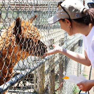 At our petting zoo, guests can enjoy feeding the farm animals with food provided by Bates Nut Farm. Be sure to bring a few quarters — our feed vending machine is located in front of the chicken display and dispenses a handful of feed for 25¢. You can also purchase a larger bag of feed in the store for 75¢. Afterward, handwashing sinks with soap and water are conveniently located nearby so everyone can clean up before continuing their visit.
