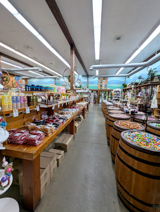 Step inside our country store and take in the iconic view of wooden barrels filled with colorful candies and aisles stocked with a huge variety of fresh nuts, dried fruits, chocolates, and specialty treats. It’s a nostalgic shopping experience that has delighted generations of visitors.